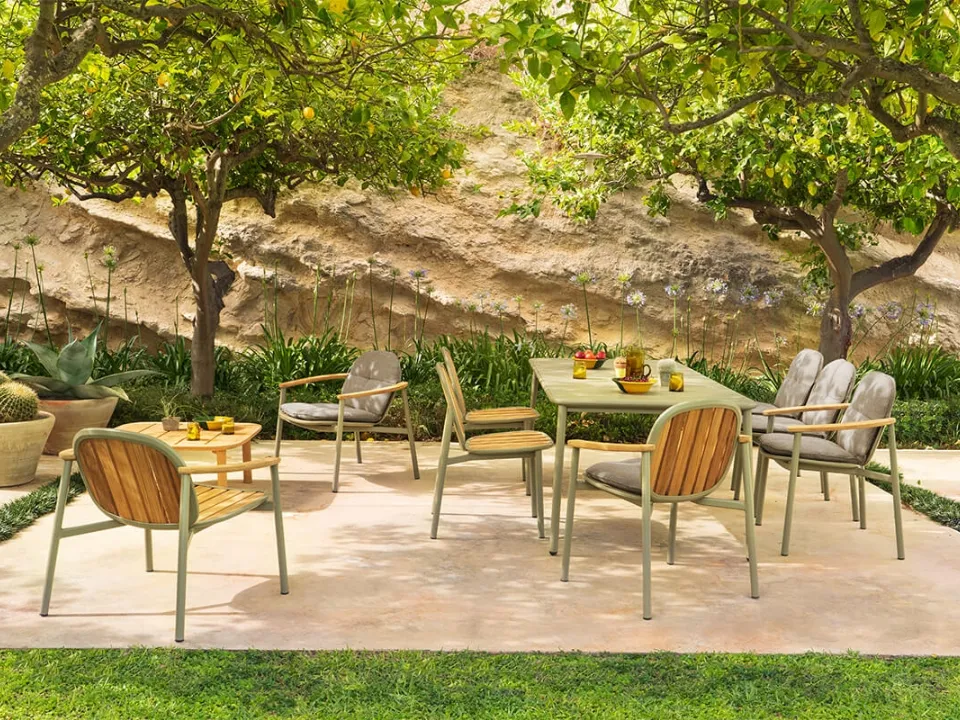 Scopri la nostra serie di tavoli da giardino in legno di Emu: il modello Tavolo e sedia Twins presente in foto ti aspetta